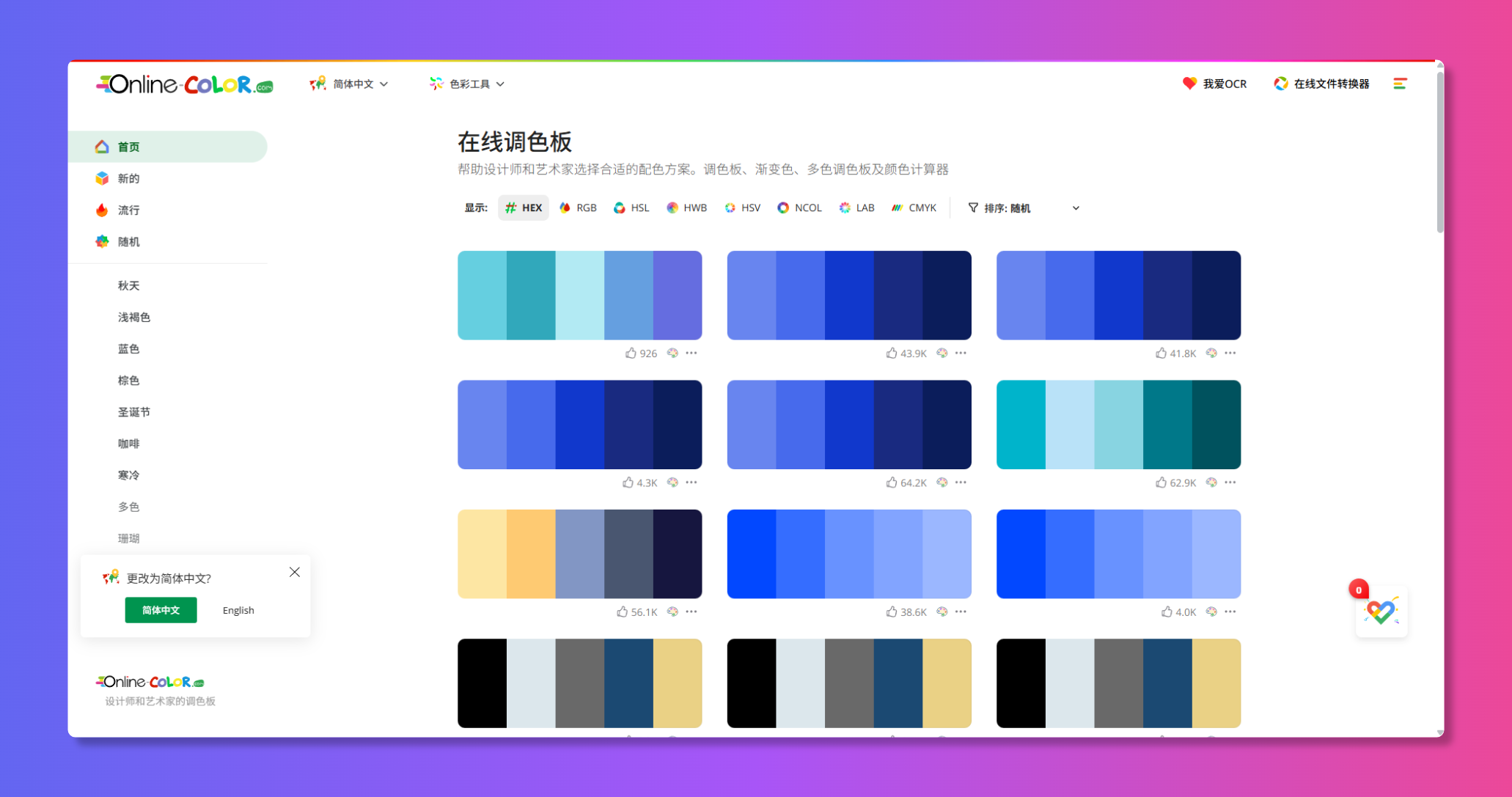 - 在线调色板:一个帮助设计师和艺术家选择合适的配色方案的网站