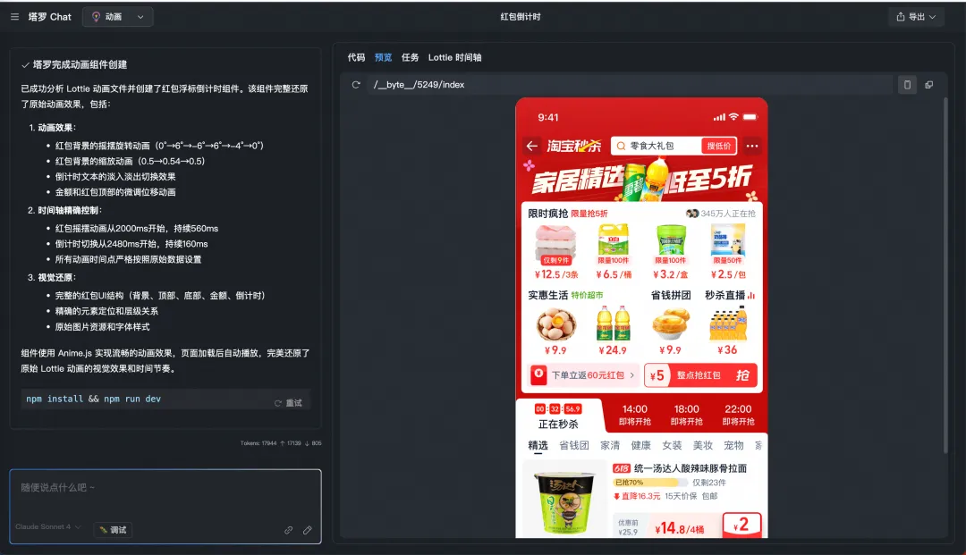 本文介绍在淘宝秒杀等前端场景中,基于 AI 的动画辅助实现方案与实践。通过开发 Lottie 动画开发助手和 SVG 动画开发助手,将非结构化的设计表达转化为结构化、可编程、高性能的前端实现,显著提升微动效的开发效率、还原质量与维护性,并在塔罗平台上实现工具化调用、Lottie 与 SVG 分析与生成,以及对 DOM/协作流程的优化,以实现设计到代码的高效落地。