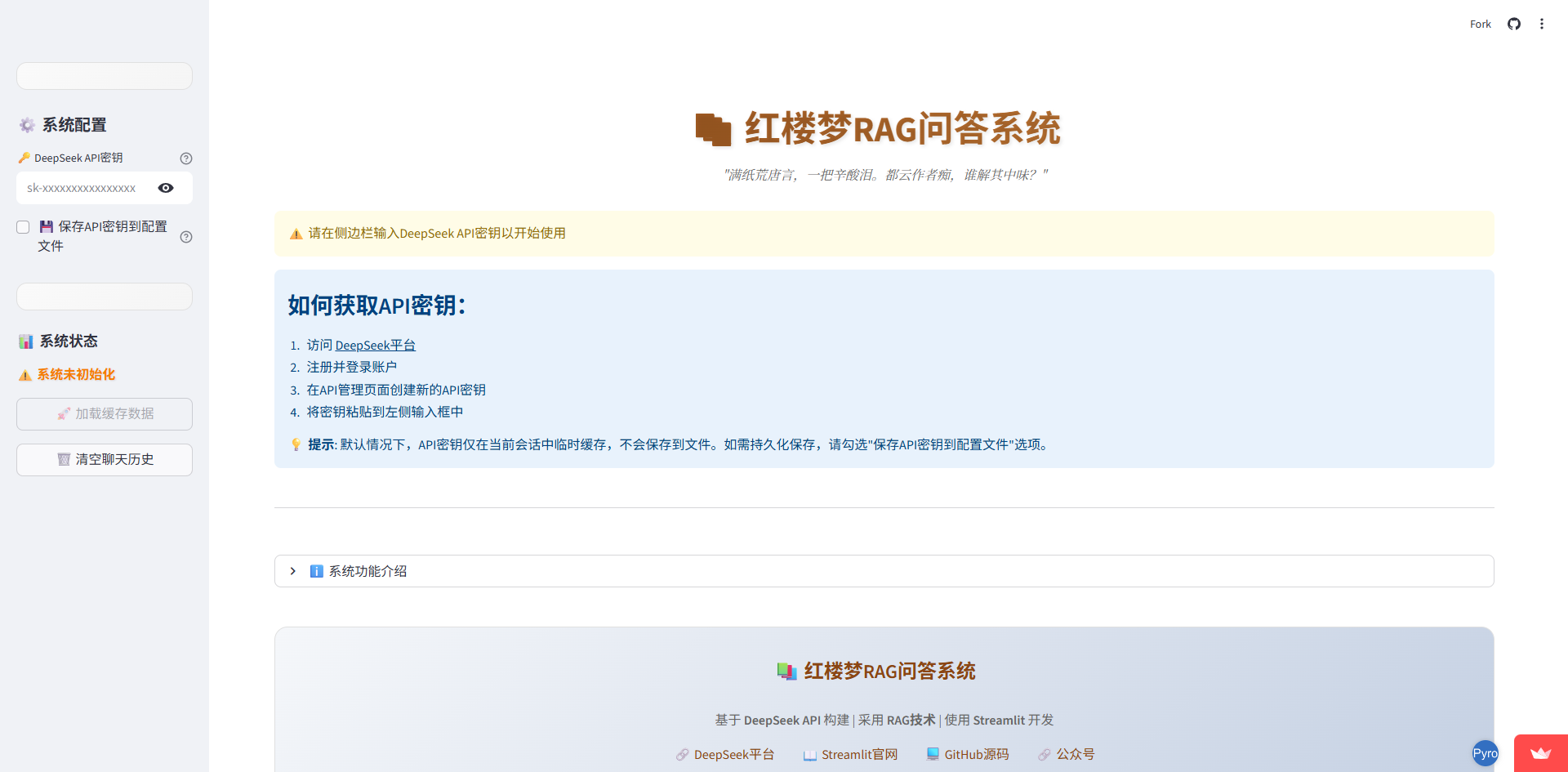 一个基于DeepSeek API的红楼梦智能问答系统,通过RAG(检索增强生成)技术实现精准的文本问答。