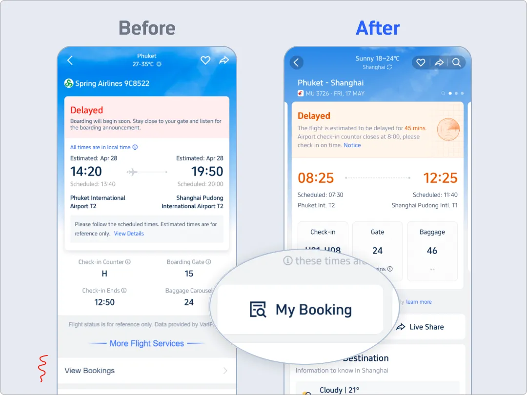 本文从“情绪驱动”出发,重新设计航班状态页,提出三个以用户情绪为核心的设计决策:通过风险等级可视化降低不确定感、在高压场景中提供最短决策路径的入口、以及在后续阶段通过“关怀”功能实现情绪外溢的正向传递,强调设计不仅是界面美化,更是进入并回应用户情绪的过程。