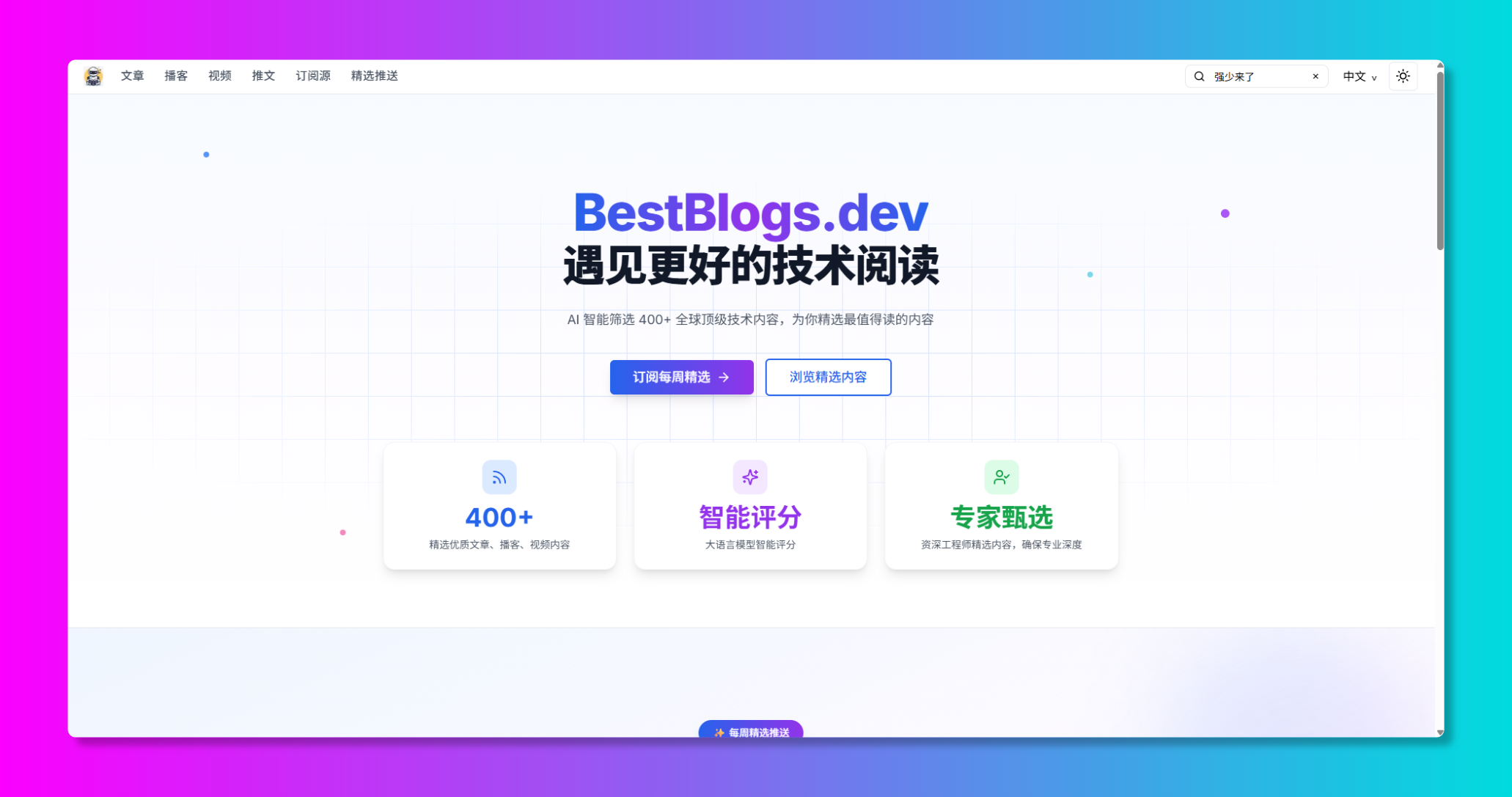 AI 智能筛选 400+ 全球顶级技术内容,为你精选最值得读的内容
