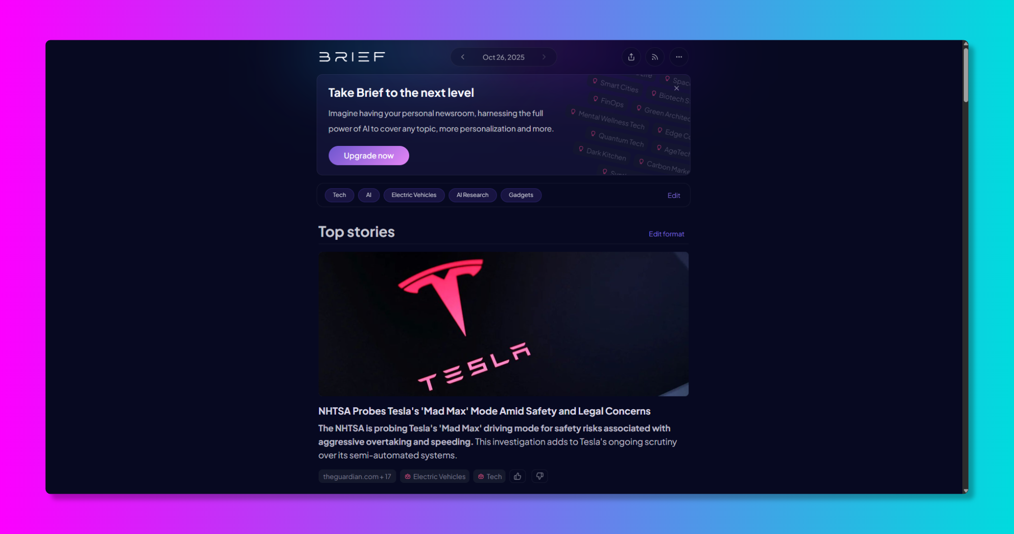 Brief News是一款先进的AI驱动新闻聚合平台,致力于简化日常新闻获取流程。平台通过分析覆盖25个以上主题的数千篇文章,将相关报道聚类,并生成涵盖多个权威来源要点的精炼摘要。通过AI推荐引擎,Brief News为每位用户个性化推送内容,同时通过多元视角确保报道的客观与平衡。Brief News为用户提供高效、易读的新闻简报,可通过邮件或网页获取,是节省时间、快速掌握资讯的理想选择。